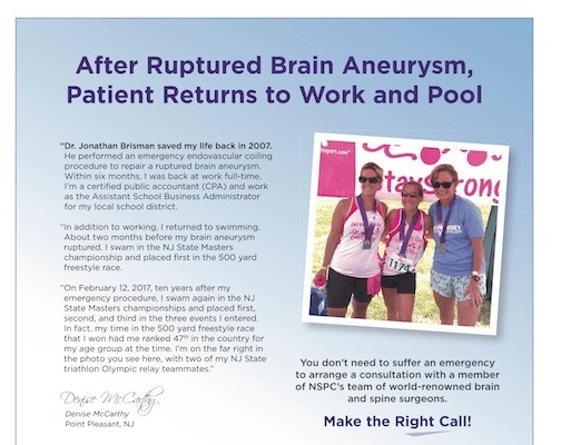 Over 10 years ago, Dr. Jonathan Brisman treated Denis McCarthy’s brain aneurysm with an emergency endovascular coiling procedure. Read her story here.