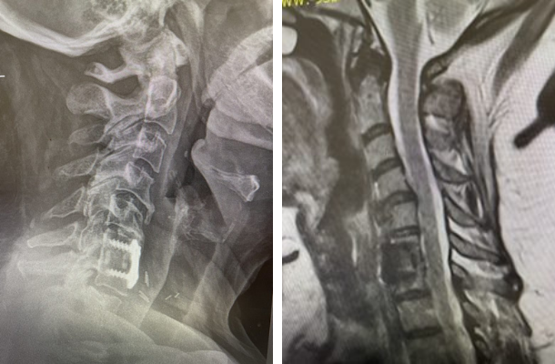 Another patient followed up who I initially had seen on our NSPC mobile van at her worksite. She was 52 years-old and complained of chronic intractable left greater than right arm pain and tingling. She had had a prior anterior cervical discectomy and fusion with plate at C6-7 by another surgeon.